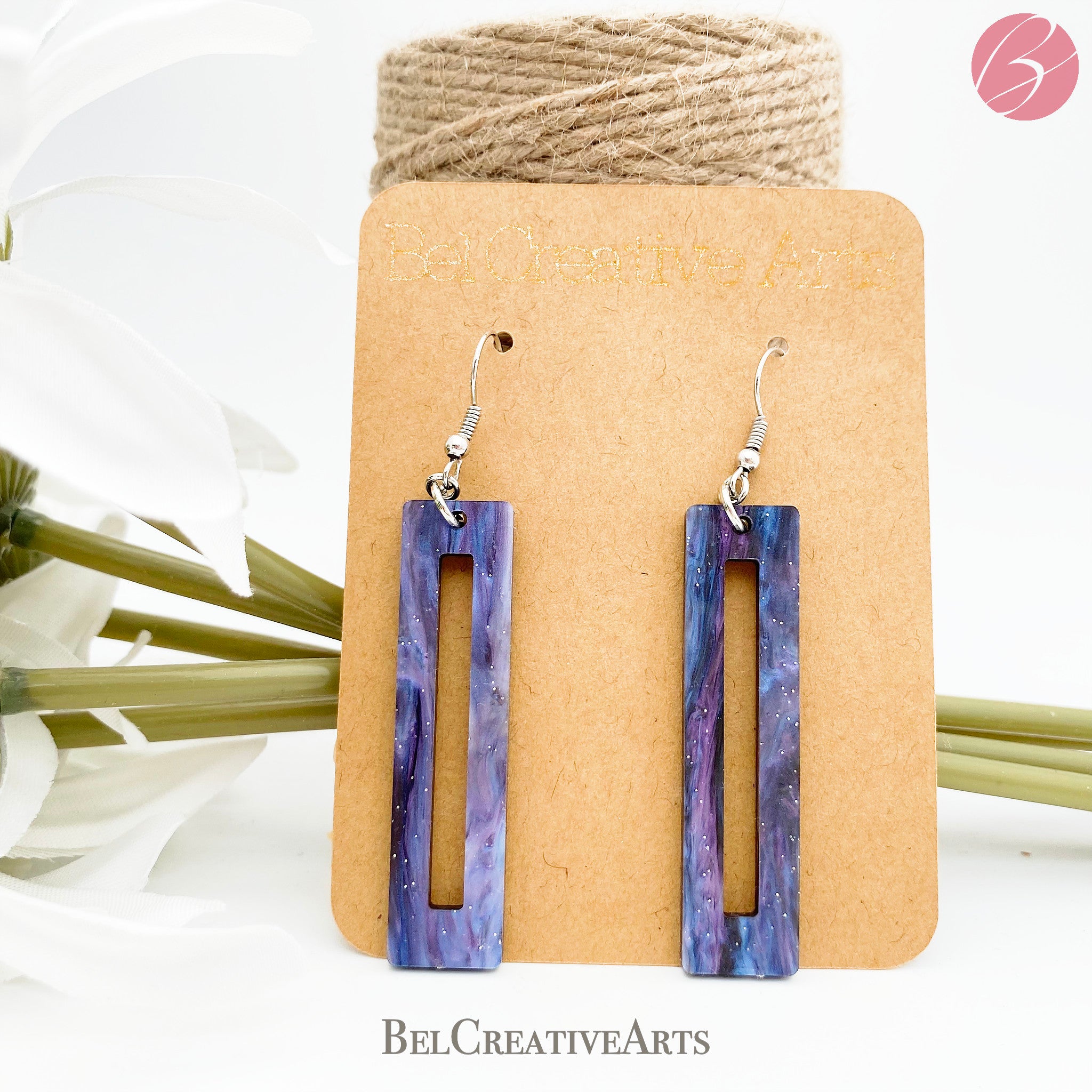 Style: purple earrings, geometric earrings, rectangular earrings, bar earrings, dangly earrings, drop earrings
